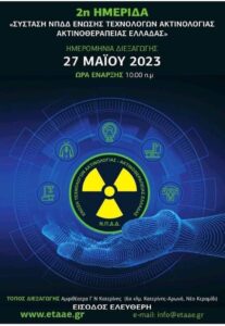 Το Σάββατο 27 Μαΐου 2023 διοργανώθηκε η 2η ενημερωτική ημερίδα της Ε.Τ.Α.Α.Ε.-Ν.Π.Δ.Δ. στο αμφιθέατρο του Γ.Ν. Κατερίνης στην Κατερίνη, την οποία παρακολούθησαν συνάδελφοι ΠΕ και ΤΕ Τεχνολόγοι Ακτινολογίας Ακτινοθεραπείας από νοσοκομεία, κέντρα υγείας και ιδιωτικές δομές της Μακεδονίας, της Ηπείρου και της Θεσσαλίας.